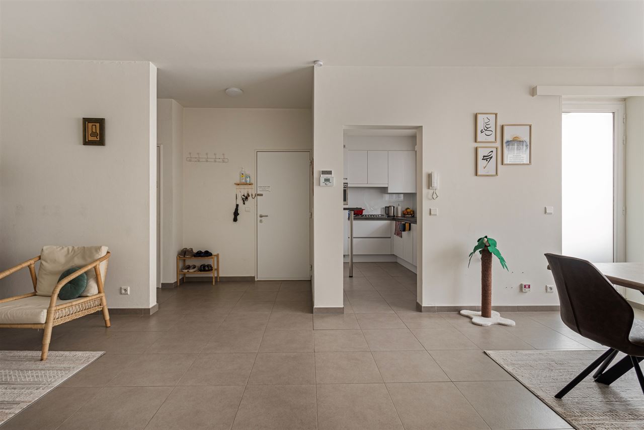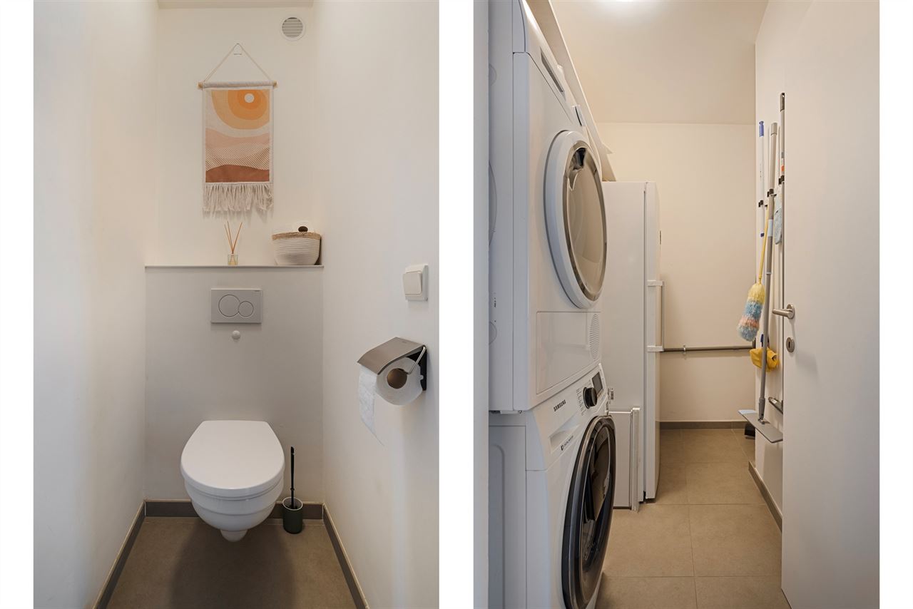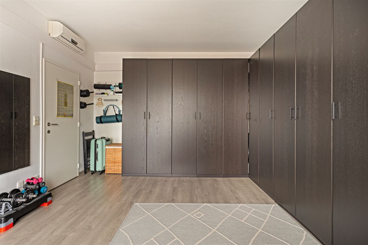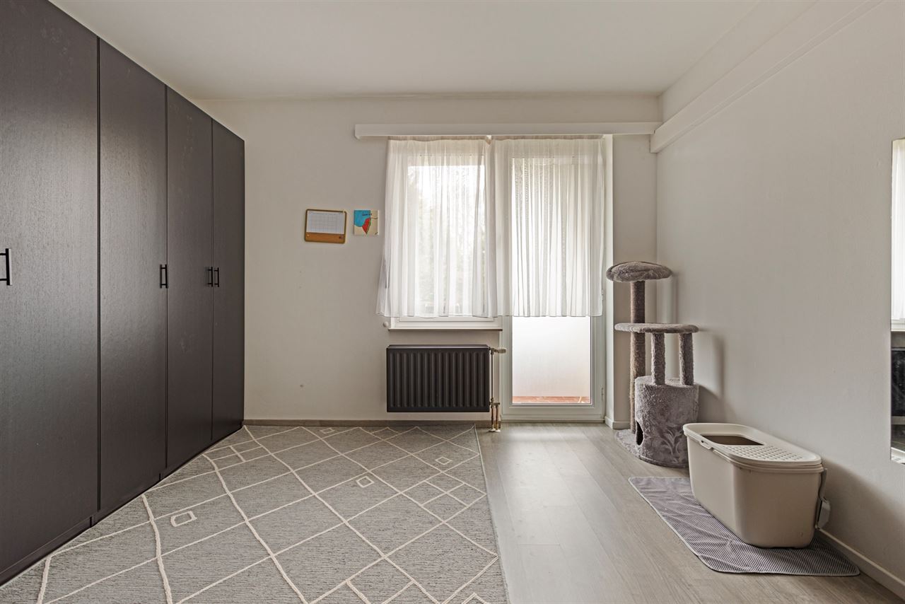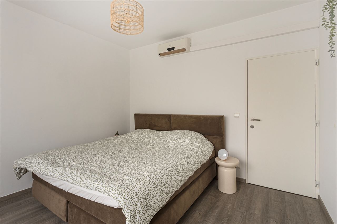 2 slaapkamers: de hoofdslaapkamer is ruim en rustig gelegen aan de achterzijde van het gebouw, een tweede slaapkamer met toegang tot het tweede terras achteraan, ideaal voor een frisse start van de dag