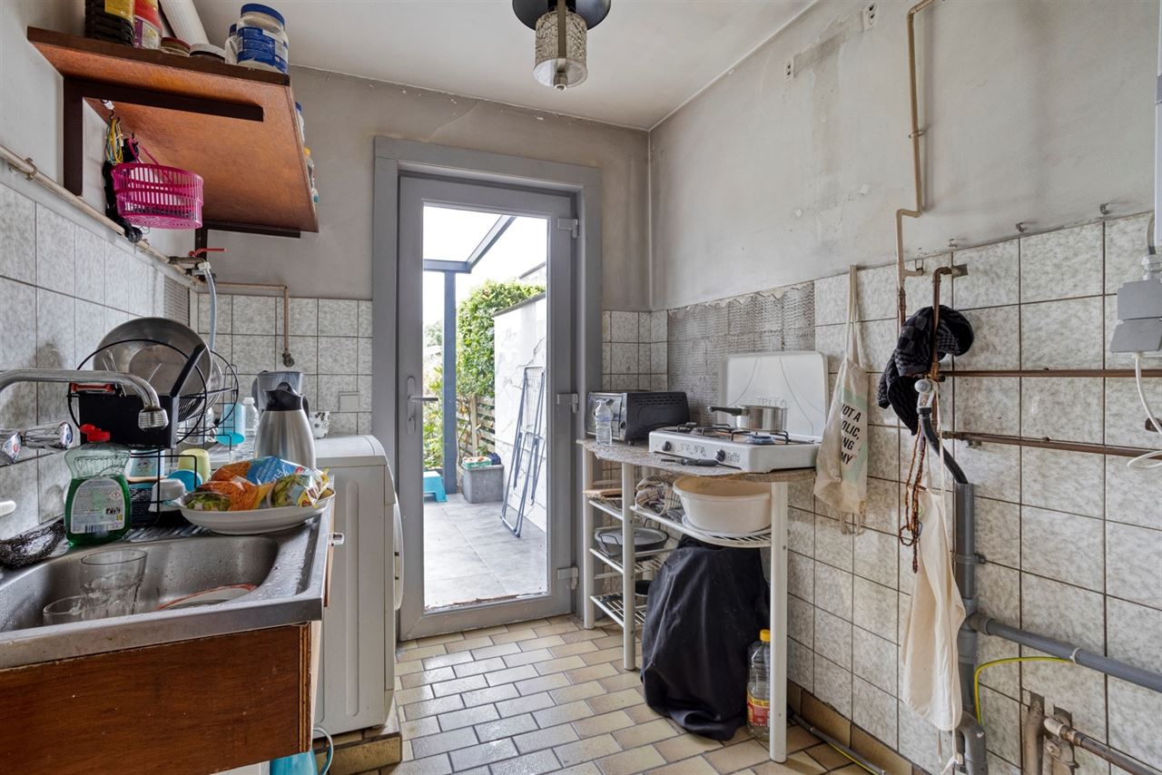 Aangrenzende keuken met zicht op de tuin